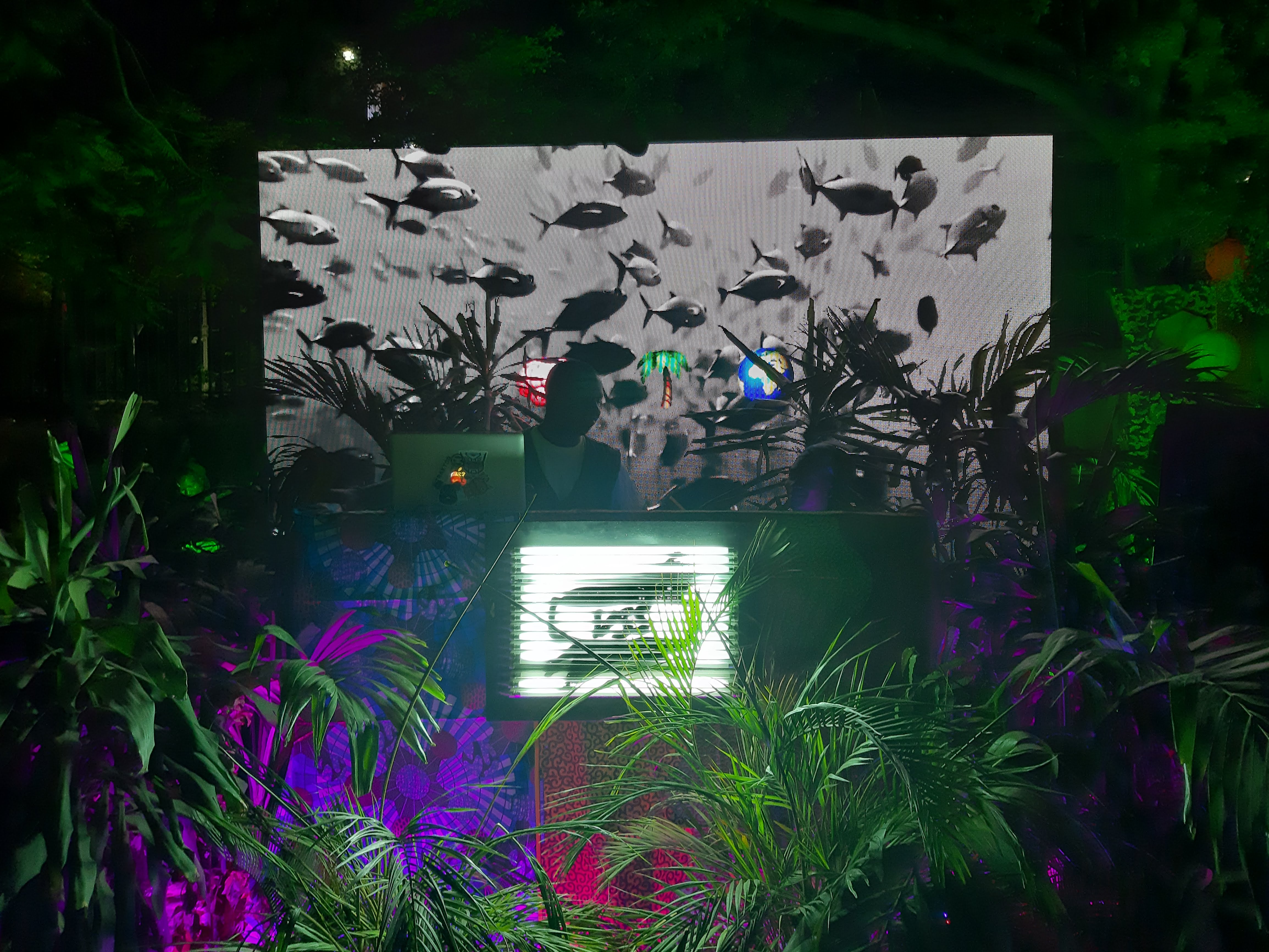 The audience is to gaze upon this CSL stage and view disk jokey performances that are highlighted by an LCD screen behind them – a stage that has also be populated by vast amounts of vegetation creating a mini jungle of sorts. The audience will witness Colored light emanating from this jungle with the sources of this light unseen. ” – Aye of VSS, 2018
